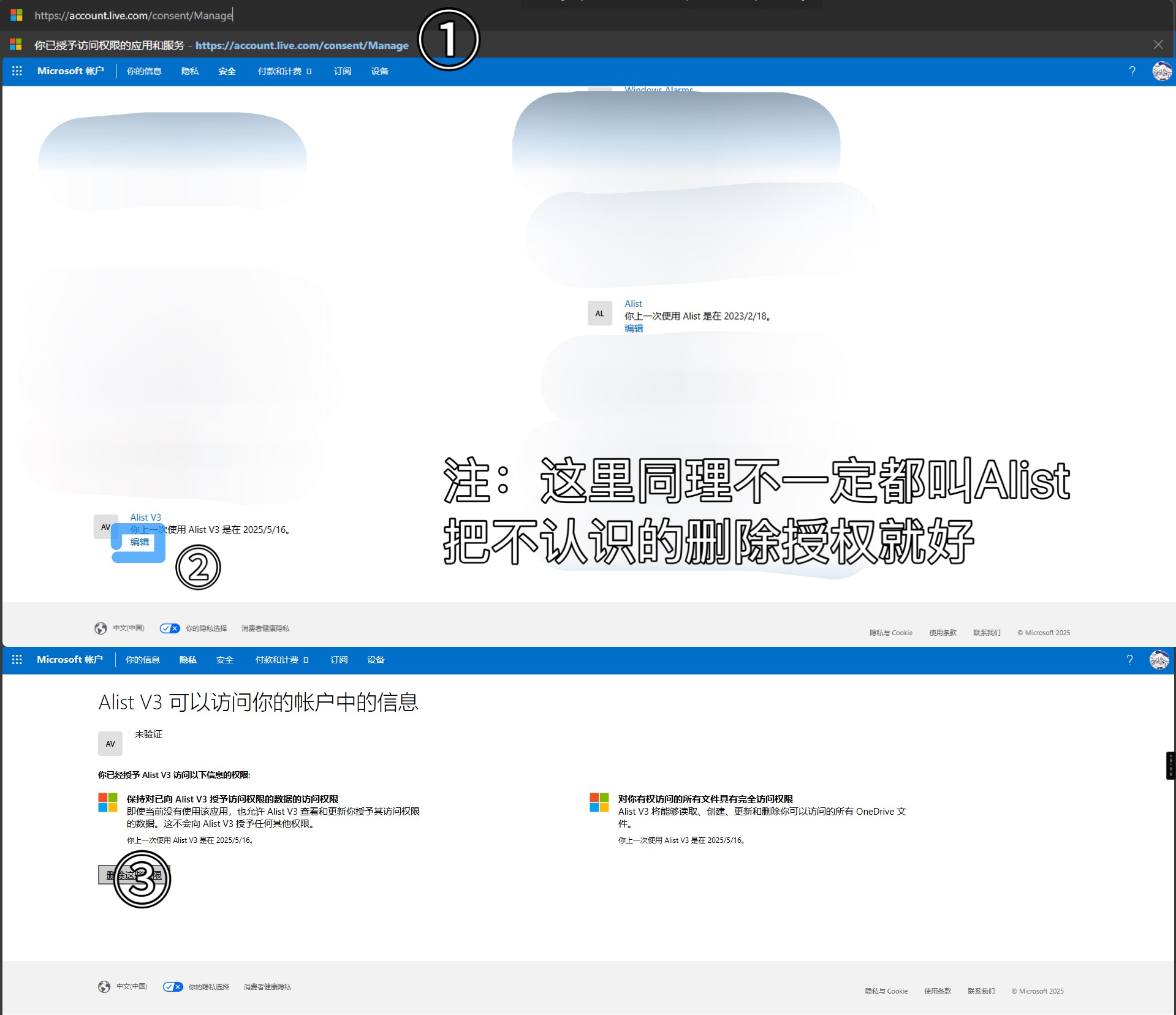 Since it’s not possible to provide detailed steps for every platform, we invite helpful users to visit https://github.com/OpenListTeam/OpenList-Docs and share screenshots of the authorization revocation process.